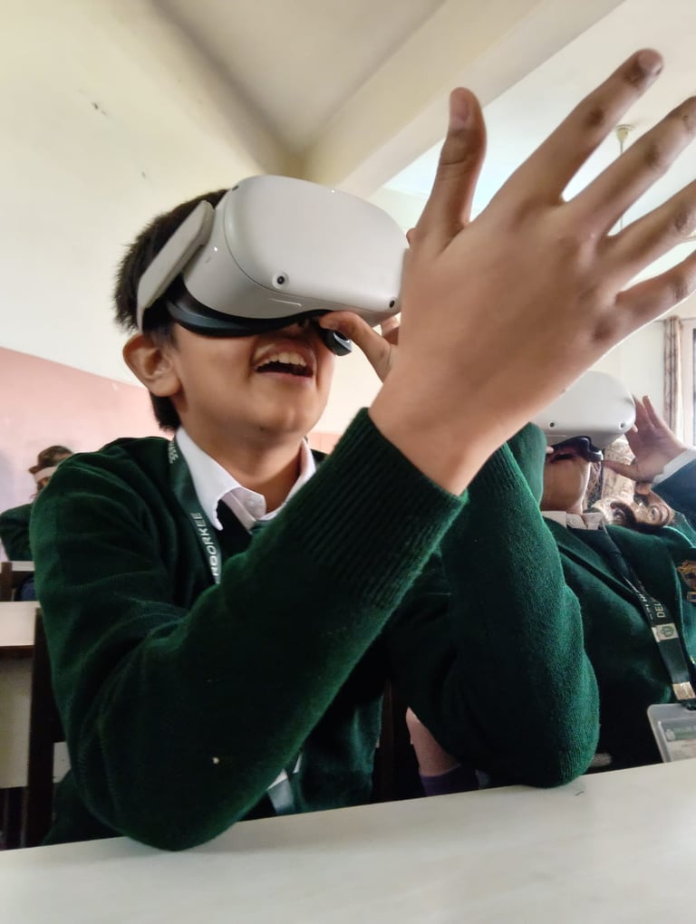 At Asha Modern International School, we conducted engaging VR learning workshops that allowed students to explore space missions and scientific concepts in an immersive environment. The collaboration emphasized experiential education and higher learning retention.
